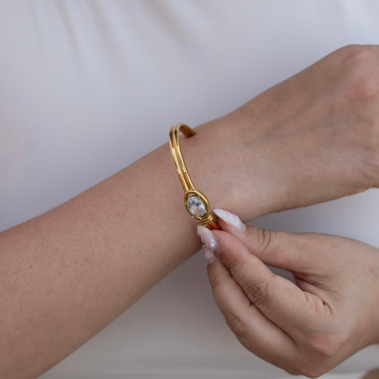 Elysian - Oval Crystal Gold Cuff Bracelet