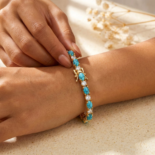 Turquoise Tennis Bracelet – 925 Sterling Silver & 18K Gold Plated